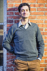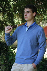 Épuisé - Pull Homme Col en V en Cachemire Ardoise