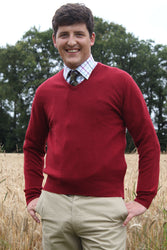Épuisé - Pull Homme Col en V en Cachemire Rouge Red Delicious
