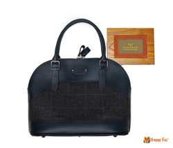 Épuisé - Sac à main en Cuir bleu et Tweed gris Annie
