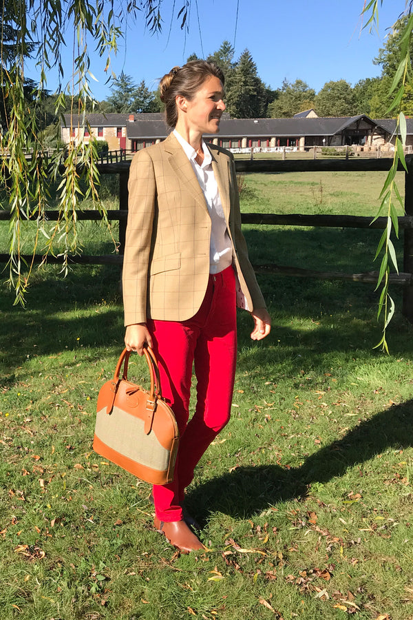Vous allez adorer ce blazer en Tweed pour femme très chic, léger et souple. Il sera parfait pour les occasions campagne chic porté avec une jupe de couleur unie ou un pantalon en toile ou en velours côtelé. Les carreaux très fins rouge et bleu rendent le tissu très féminin.