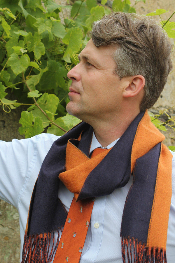 Cette écharpe est également entièrement réversible ce qui vous permettra de profiter de ces deux couleurs : bleu marine et gingembre.