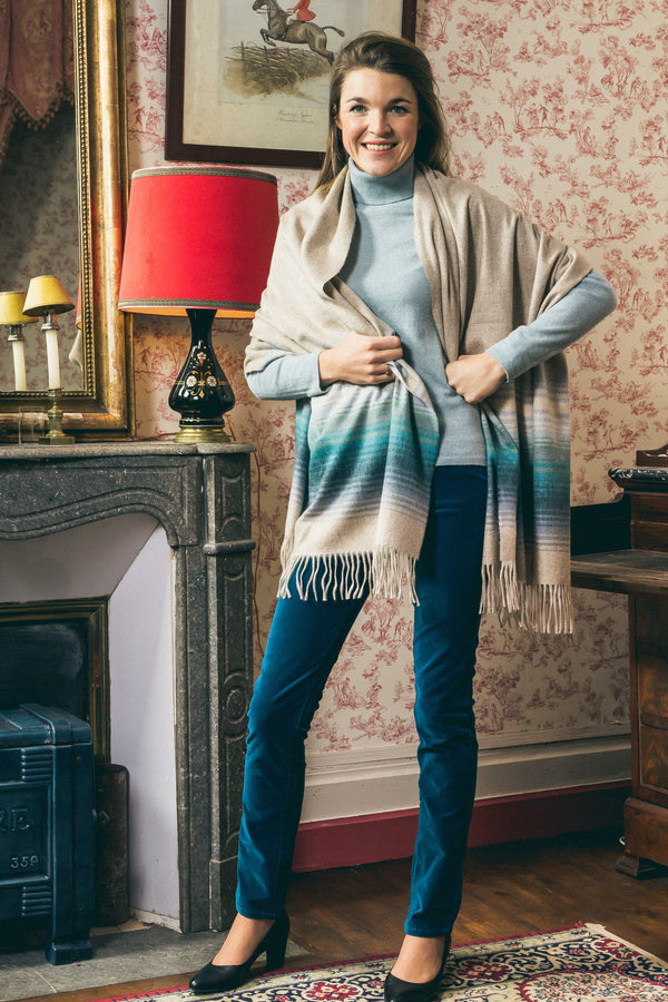 Cette étole cachemire aux couleurs de la Forêt sera idéale pour cet hiver, pour rester au chaud en toute élégance.